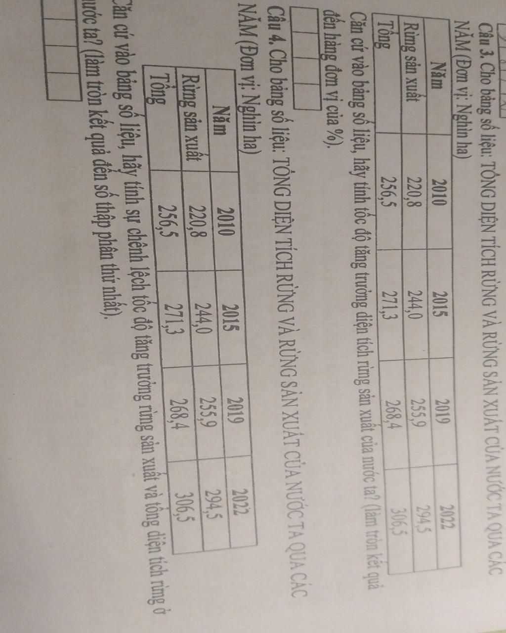 Câu 3. Cho bảng số liệu: TỔNG DIỆN TÍCH RỪNG VÀ RỪNG SẢN XUẤT CỦA NƯỚC TA QUA CÁC