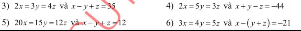 ` 6) 3x = 4y = 5z ` và ` x - (y + z) = -21 `