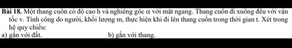 Bài 18. Một thang cuốn có độ cao h và nghiêng góc a với mặt ngang. Thang cuốn đi xuống đều với vận