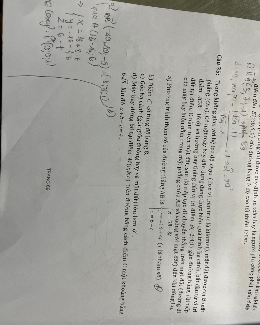 Câu 35: Trong không gian với hệ tọa độ Oxyz (đơn vị trên trục là kilomet), mặt đất được c ...
