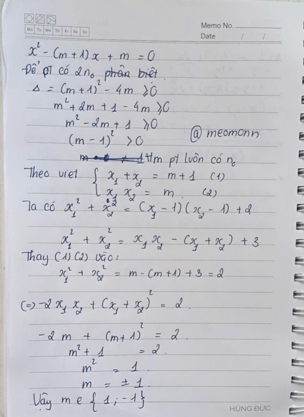 Ta có: `x_1^2+x_2^2=(x_1-1)(x_2-1)+2`
