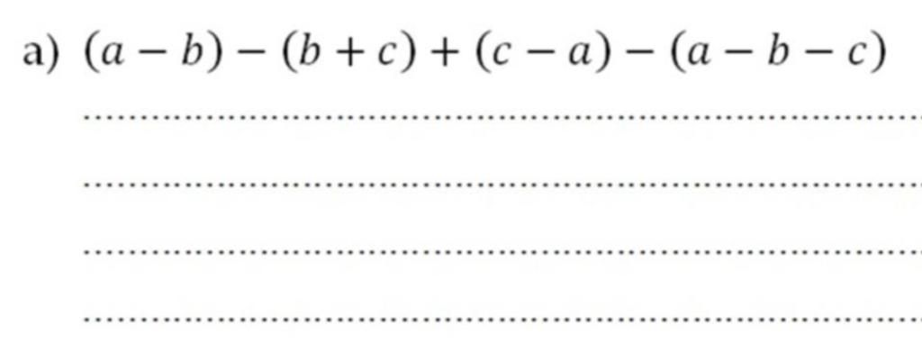 `a) (a-b)-(b+c) +(c-a) -(a-b-c)`