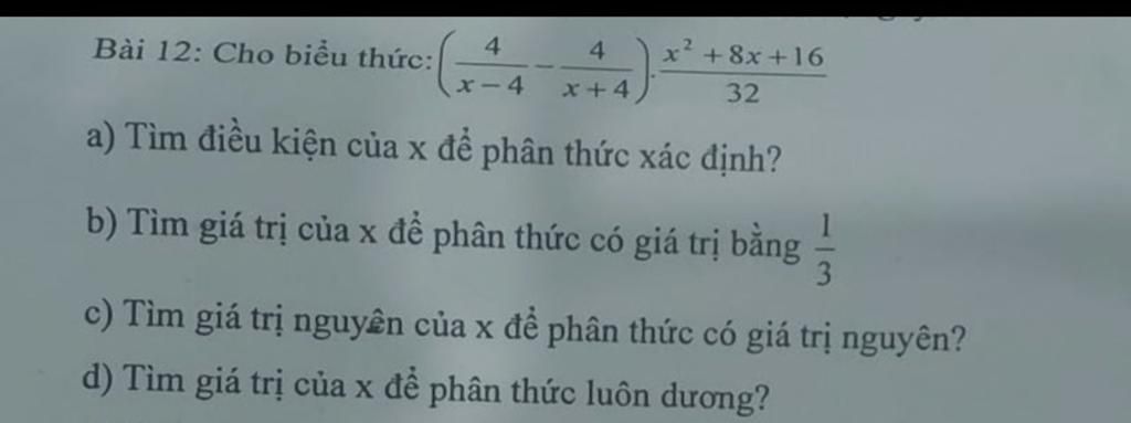 c) Tìm giá trị nguyên của x để phân thức có giá trị nguyên?