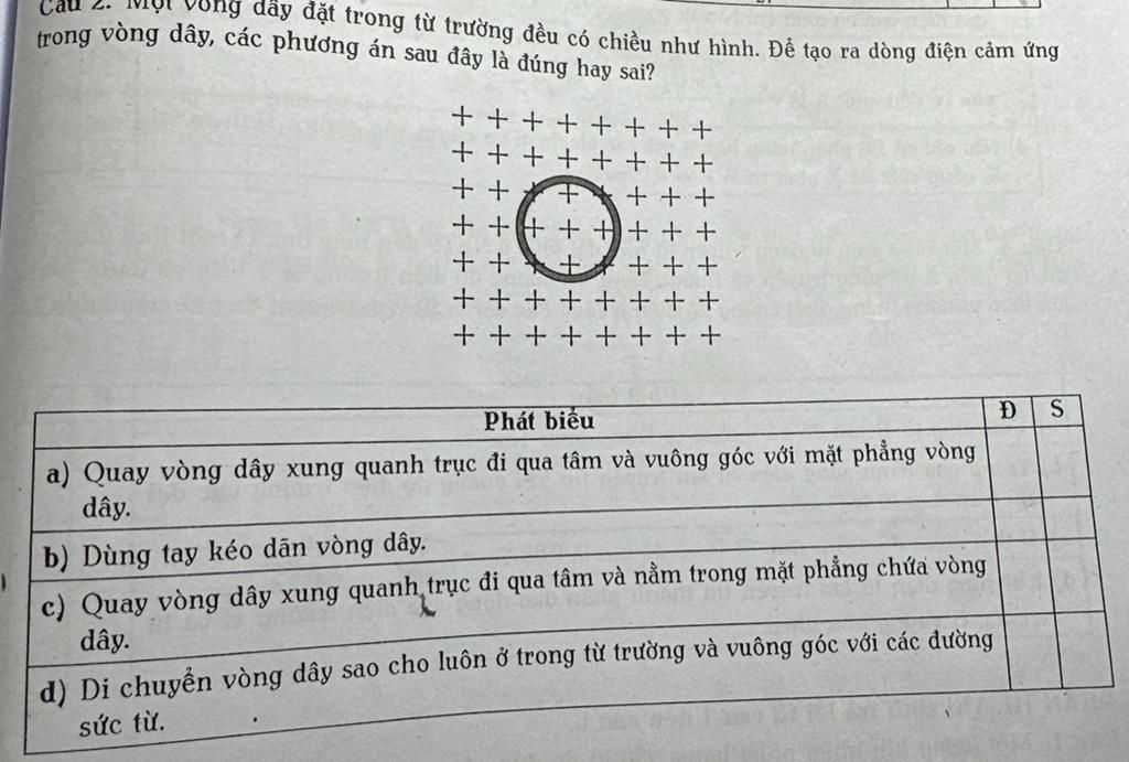 trong vòng dây, các phương án sau đây là đúng hay sai?