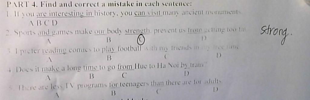 2. C -> strong 3. B -> playing 4. A -> take 4. Fewer