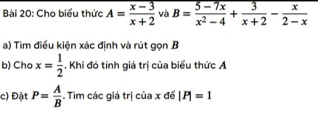 & P = \dfrac{x-3}{x+2} : \dfrac{x^2 - 2x - 1}{x^2 - 4} \\