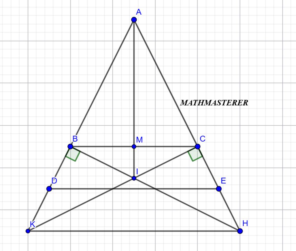 4. Gọi I là giao điểm HB và KC. Chứng minh ba điểm A, M,I thẳng hàng
