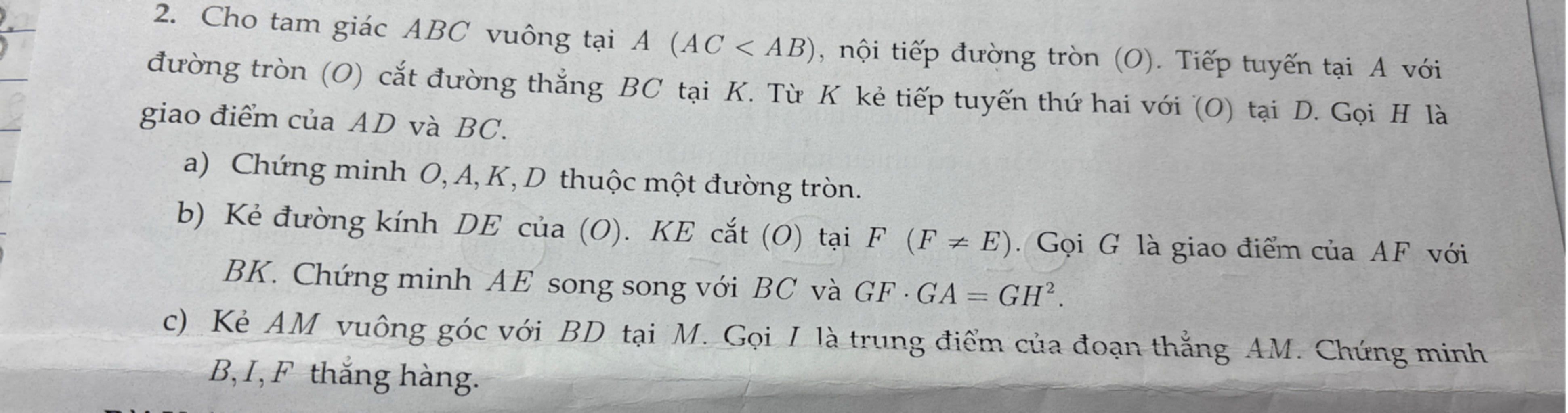& \text{b. } \text{Vì } KA, KD \text{ là tiếp tuyến của } (O) \\