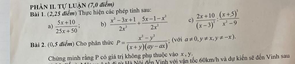 sửa : `b) (x^2-3x+1)/(2x^2)+(5x-1-x^2)/(2x^2)` `= (x^2-3x+1+5x-1-x^2)/(2x^2)` `=(2x)/(2x^2)` `= 1/x` `2.` Dòng `3``: P=-1/a` Vậy...