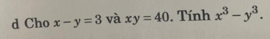 Thay `x-y=3` và `xy=40` vào biểu thức trên ta được:
