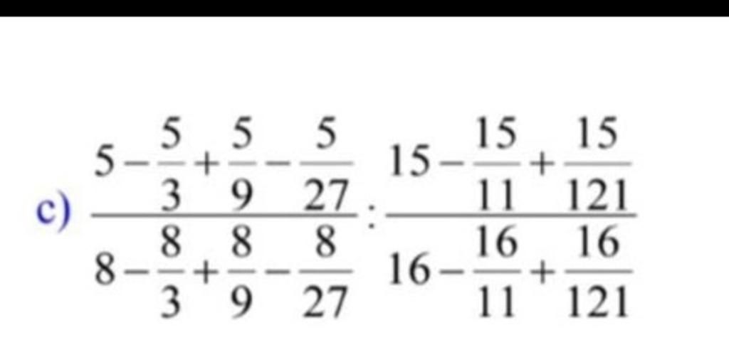 `(5-5/3+5/9-5/27)/(8-8/3+8/9-8/27) : (15-15/11+15/121)/(16-16/11+16/121)`