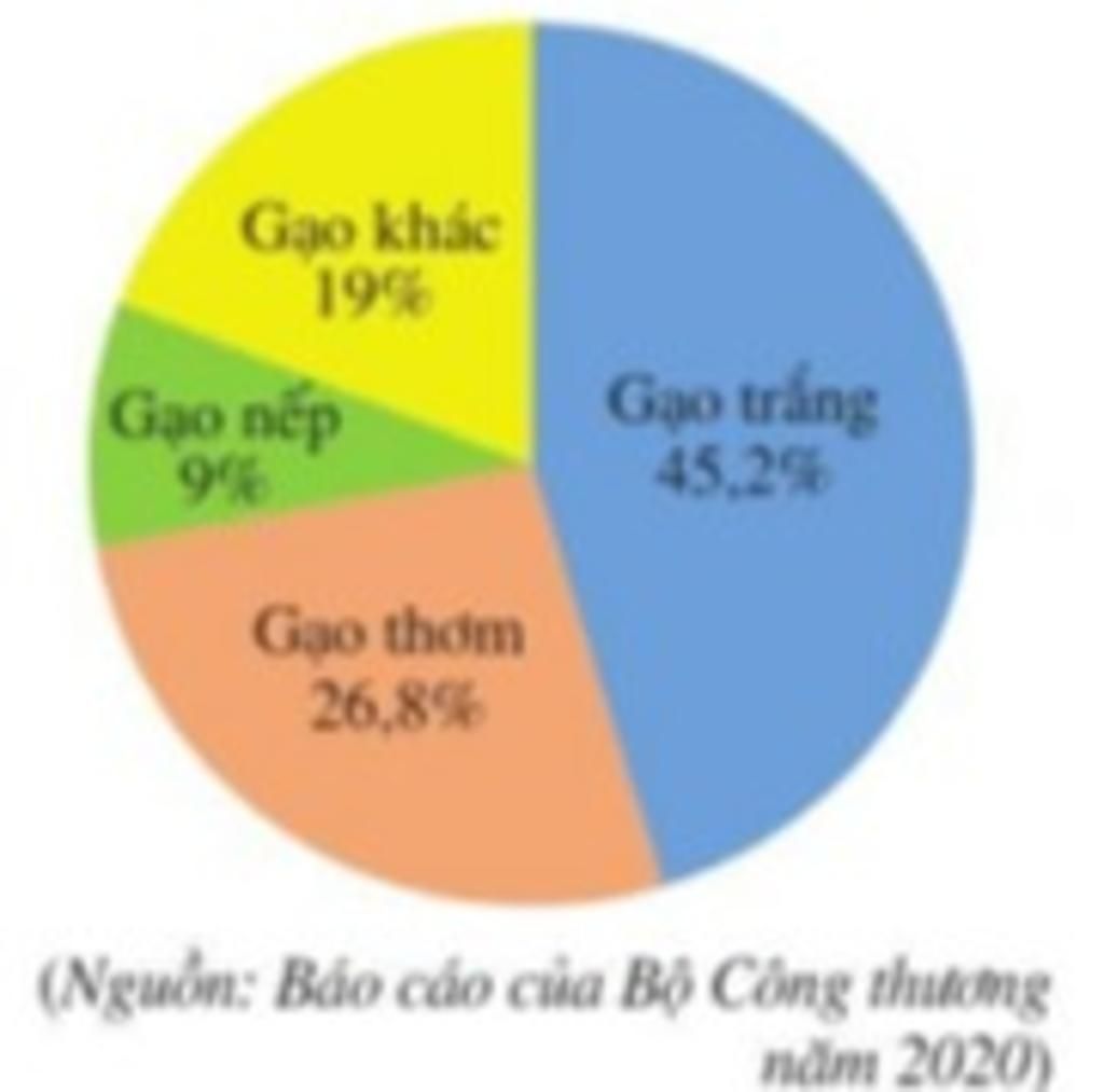 a) Tính khối lượng xuất khẩu mỗi loại gạo: gạo trắng, gạo thơm, gạo nếp của Việt Nam trong năm 2020.