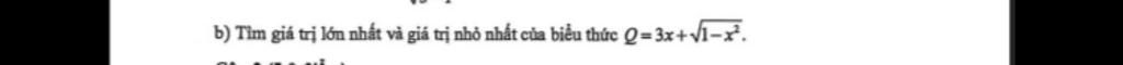 GTLN của `Q` là `sqrt(10)` khi `x/3 = (sqrt(1-x^2))/1 <=> x = 3 sqrt( 1 - x^2)`