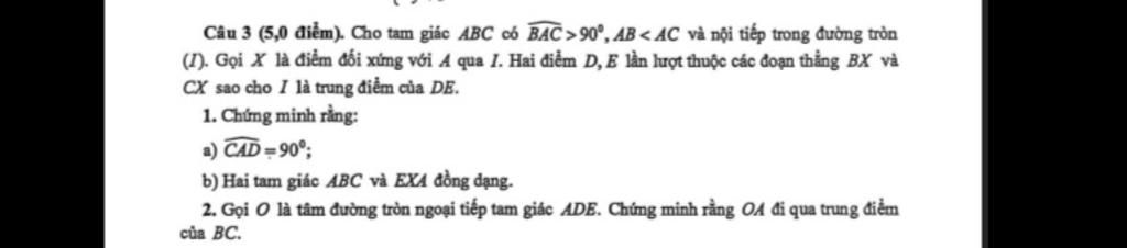 Câu 3 (5,0 điểm). Cho tam giác ABC có BAC>90®,AB < AC và nội tiếp trong đường tròn
