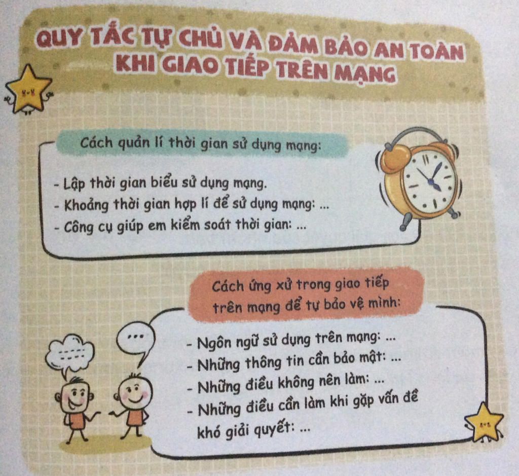 -Khoảng thời gian hợp lí để sử dụng mạng: 1–2 giờ mỗi ngày, sau khi hoàn thành bài tập.