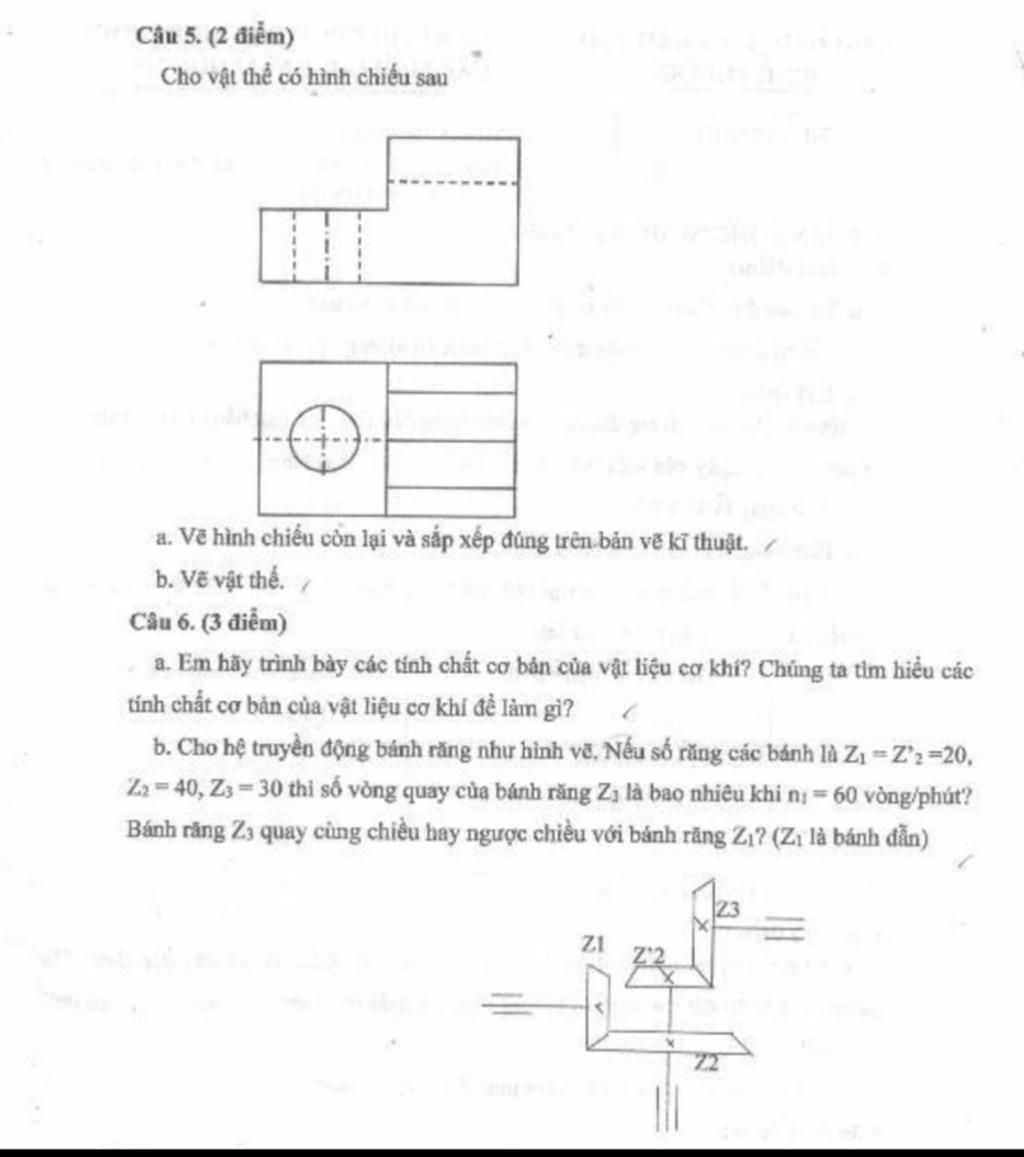 a. Vẽ hình chiếu còn lại và sắp xếp đúng trên bản vẽ kĩ thuật.