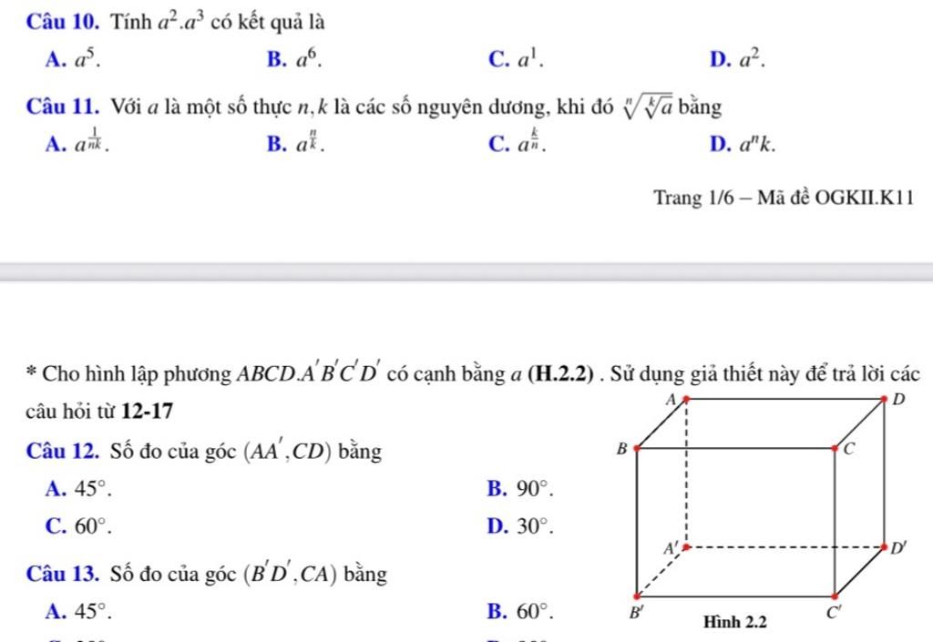 10. A do $a^2.a^3=a^{2+3}=a^5$.