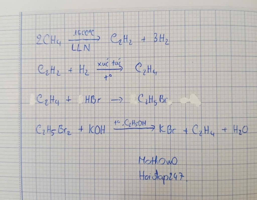 `CH_4->C_2H_2->C_2H_4->C_2H_5Br->C_2H_4`