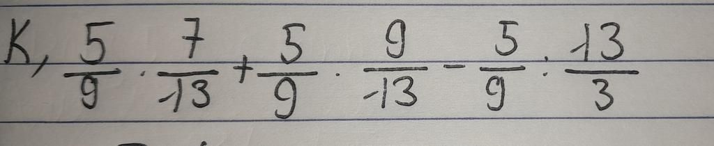 k, $\frac{5}{9}$ . $\frac{7}{13}$+ $\frac{5}{9}.$ $\frac{9}{13}$ - $\frac{5}{9}$ : $\frac{13}{3}$