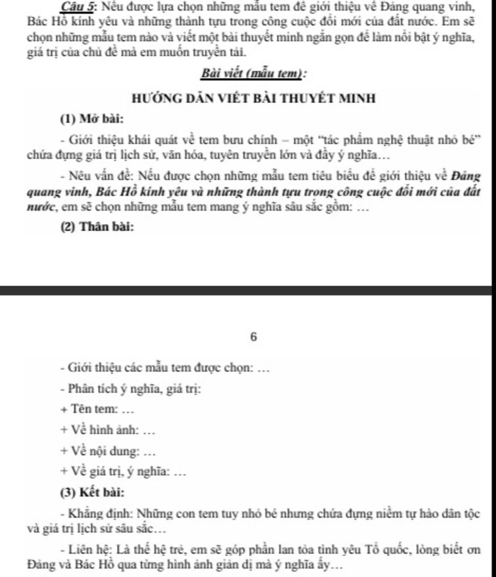 Câu 5: Nếu được lựa chọn những mẫu tem để giới thiệu về Đảng quang vinh,