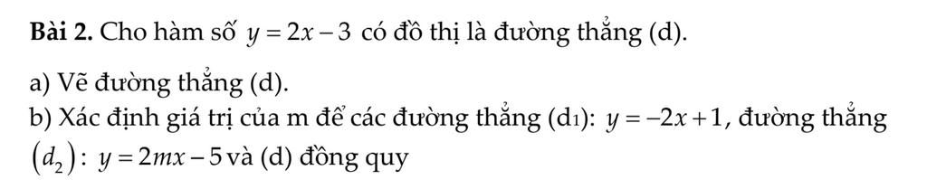 Để `(d), (d_1), (d_2)` đồng quy thì `(d_2)` đi qua giao điểm của `(d)` và `(d_1)` là `(1;-1)`