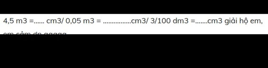 `4,5` `m^3` `=` `4,5 × 1000000 = 4500000` `cm^3`