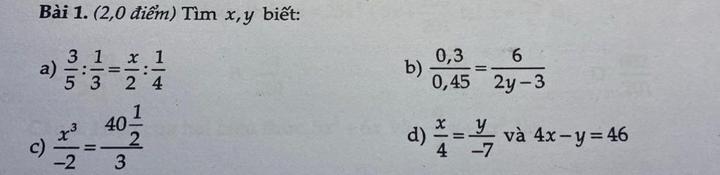 `b)(0,3)/(0,45)=6/(2y-3)`