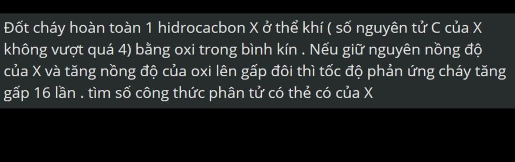 của X và tăng nồng độ của oxi lên gấp đôi thì tốc độ phản ứng cháy tăng