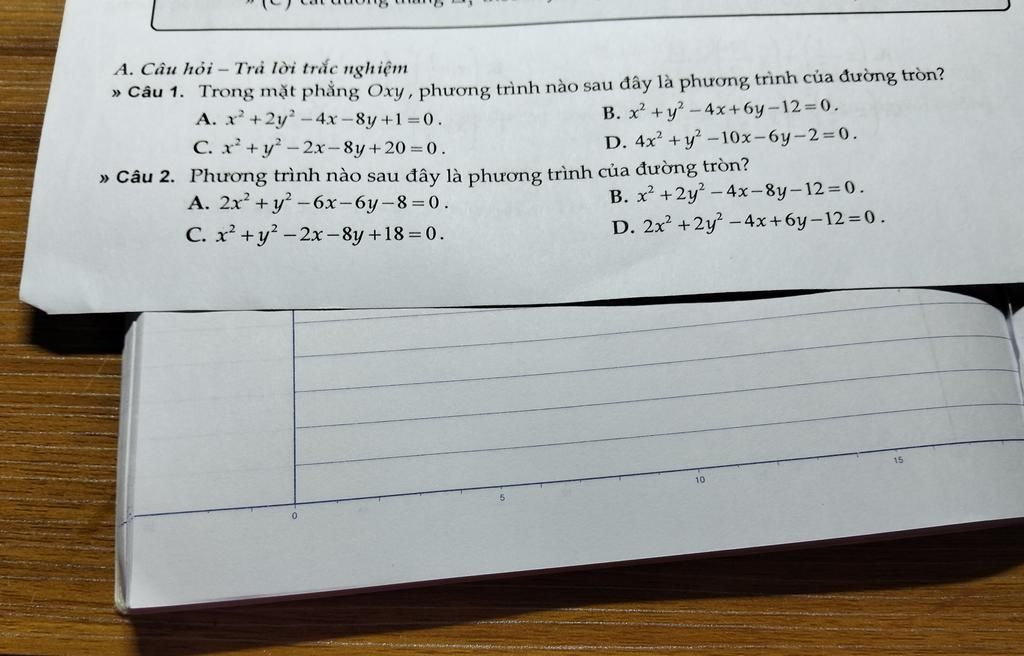 Xét B: $x^2 + y^2 - 4x + 6y - 12 = 0$ có $a = 2, b = -3, c = -12$
