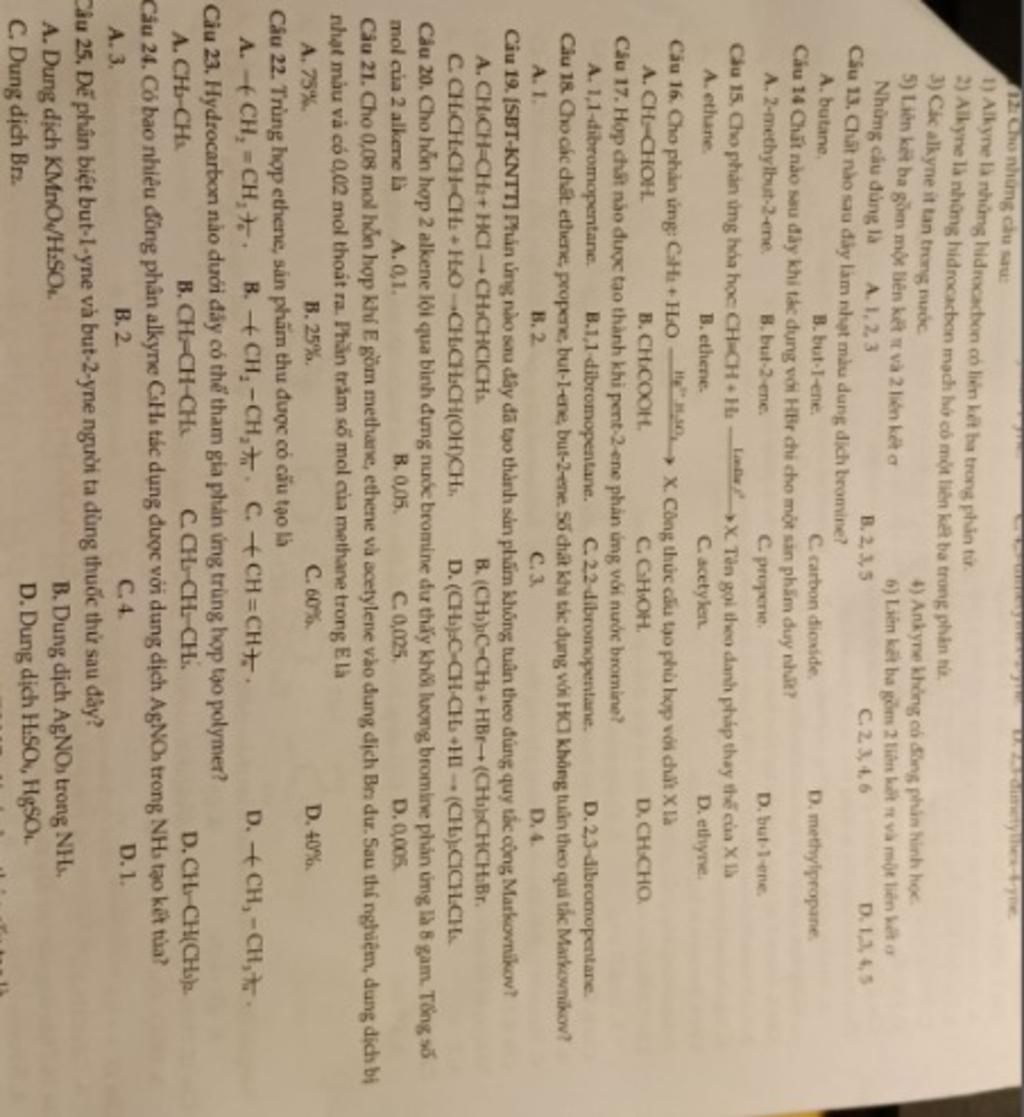 1) Alkyove là những hidrocacbon có liên kết hs trong phân tử.