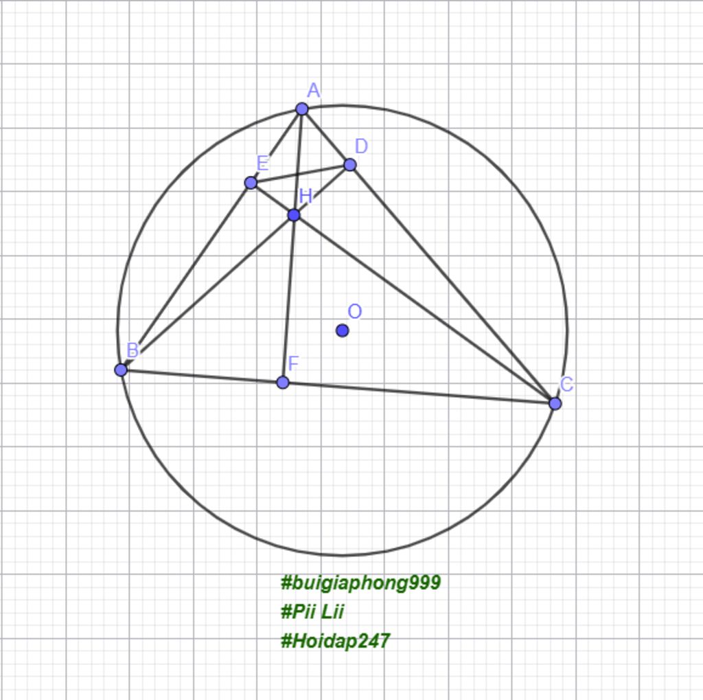 Mà chúng nằm ở vị trí đối nhau nên tứ giác `AEHD` nội tiếp đường tròn đường kính `AB` hay `A,E,H,D` cùng thuộc một đường tròn.