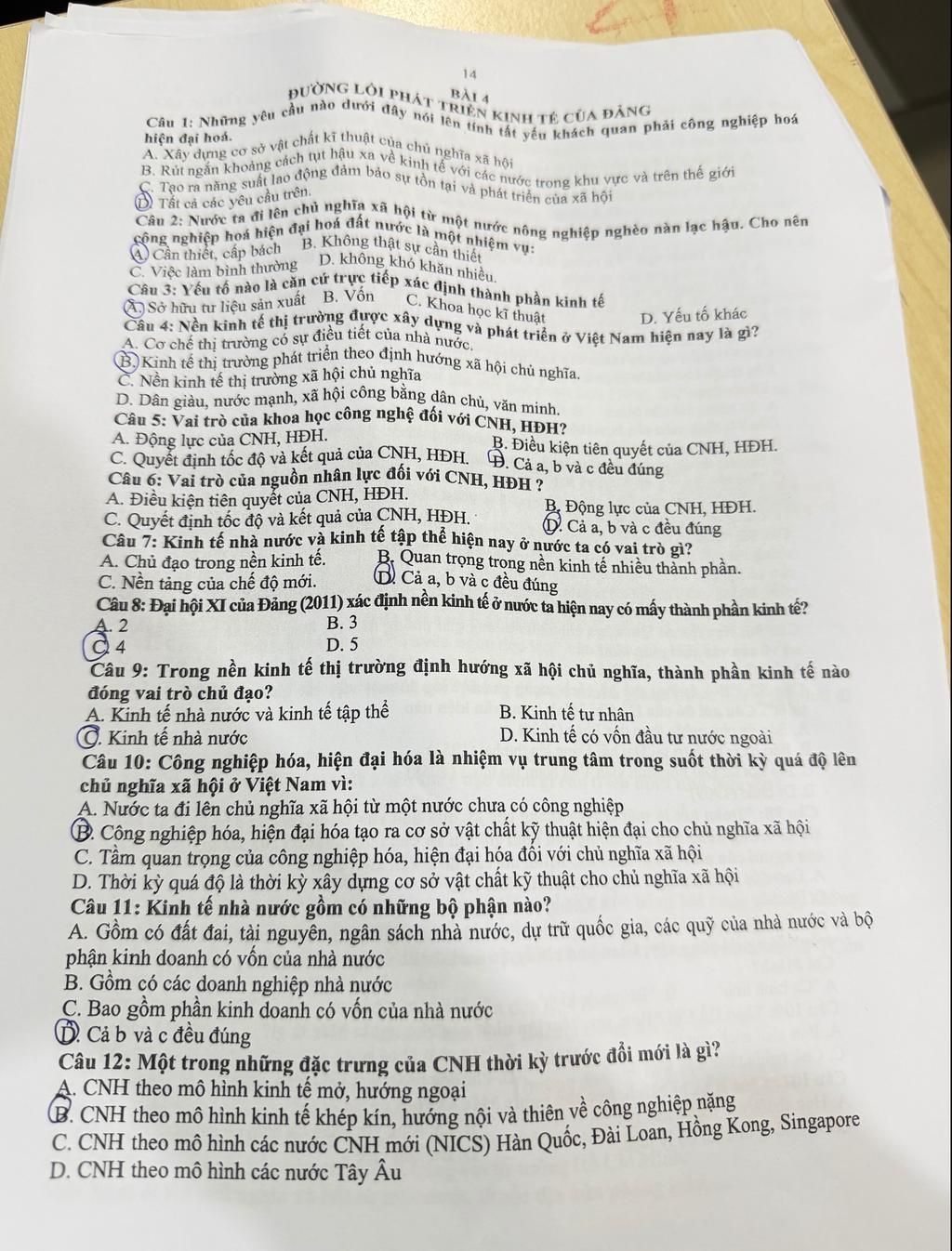 Câu 1: Những yêu cầu nào dưới đây nói lên tính tất yếu khách quan phải công nghiệp hoá