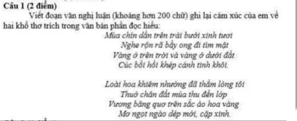 hai khổ thơ trích trong văn bản phần đọc hiểu