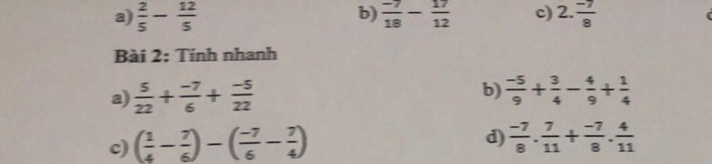 `a) 5/22 + (-7/6) + (-5/22)`