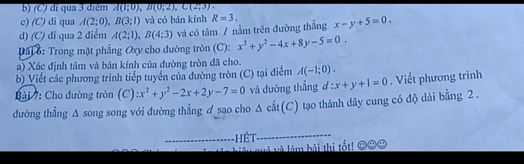 (2;1), B(4;3) và có tâm 1 nằm trên đường thẳng x-y+5=0.