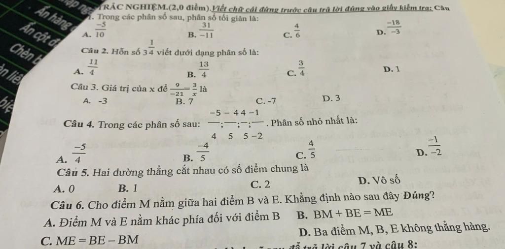 Vì `M` nằm giữa hai điểm `B` và `E` nên :