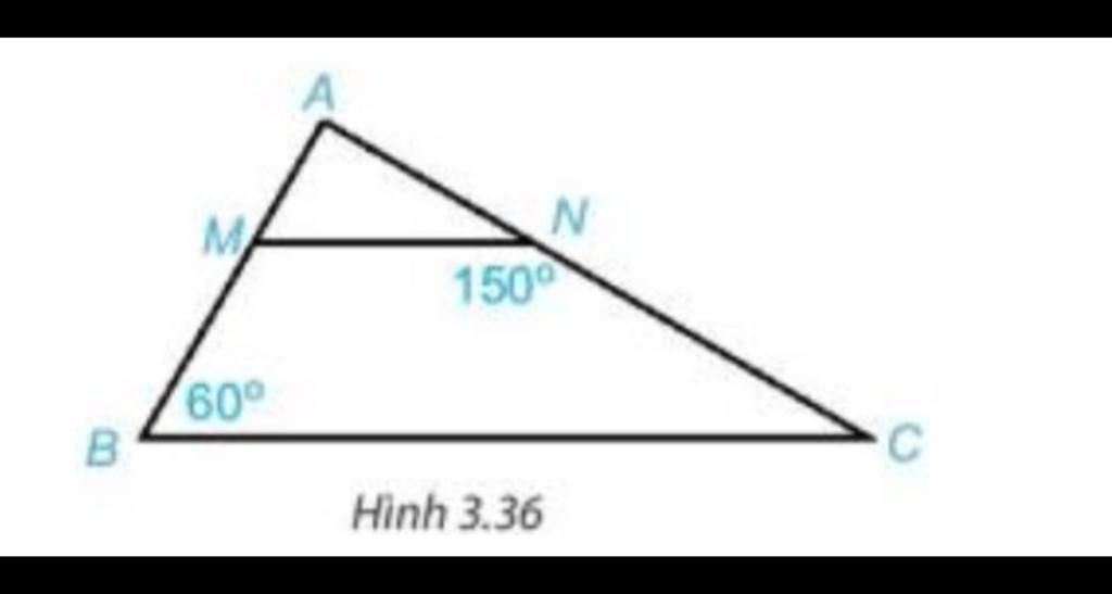 Cho hình bên , biết MN // BC, `hat{ABC}` =60°, `hat{MNC}=150°. Hãy tính số đo các góc BMN và ACB.