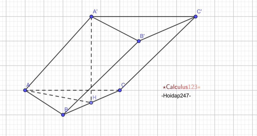 $H$ là hình chiếu của $A'$ trên $(ABC) \Rightarrow AH$ là hình chiếu của $AA'$ trên $(ABC)$