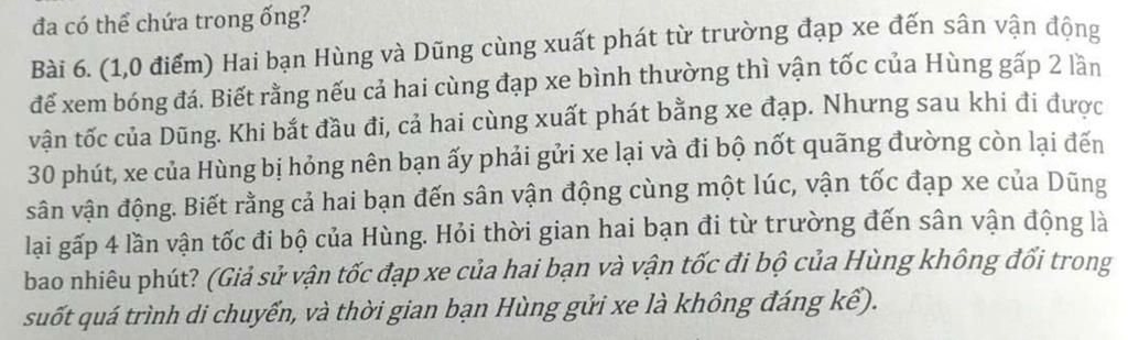 Bài 6. (1,0 điểm) Hai bạn Hùng và Dũng cùng xuất phát từ trường đạp xe đến sân vận động