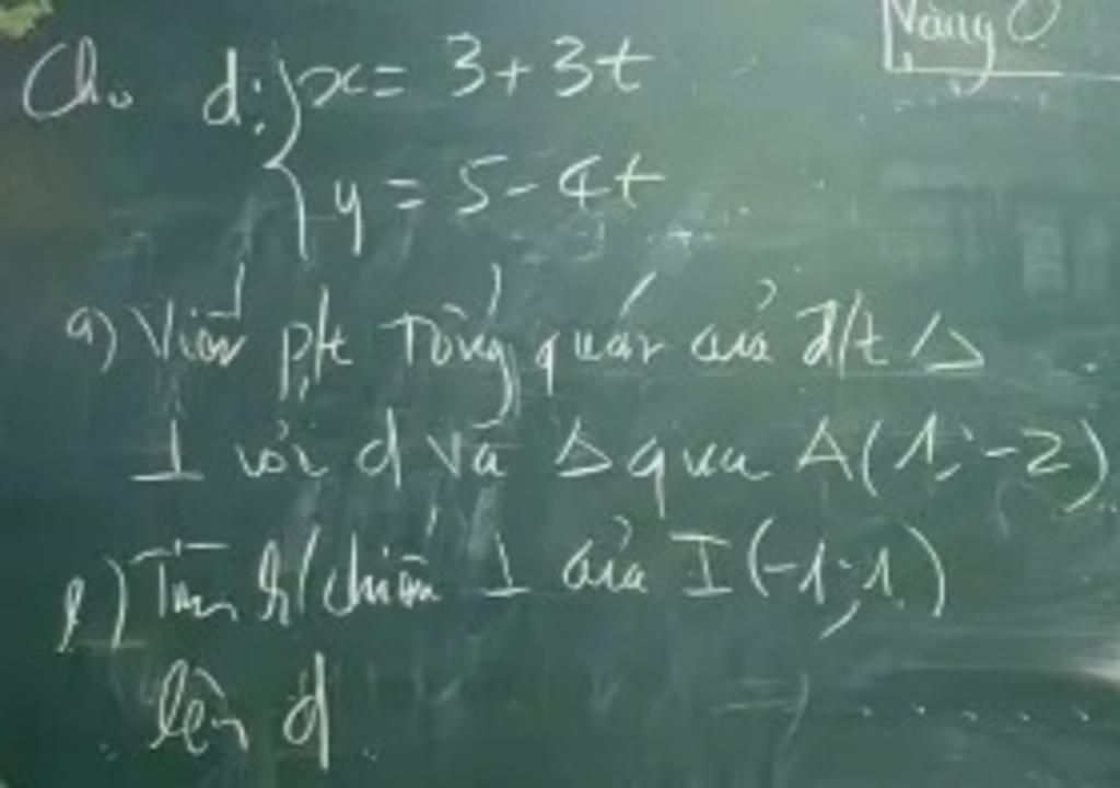 `d:{(x=3+3t),(y=5-4t):}=>` 1 vtcp của `d` là `\vec{u}(3;-4)`