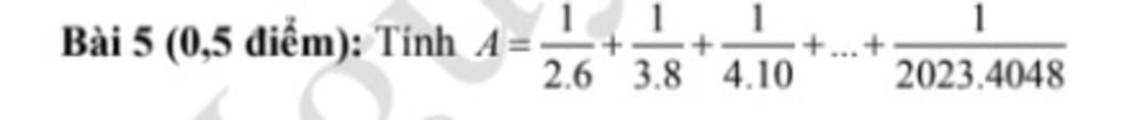 `A = 1/(2.6) + 1/(3.8) + 1/(4.10) + ... + 1/(2023.4048)`