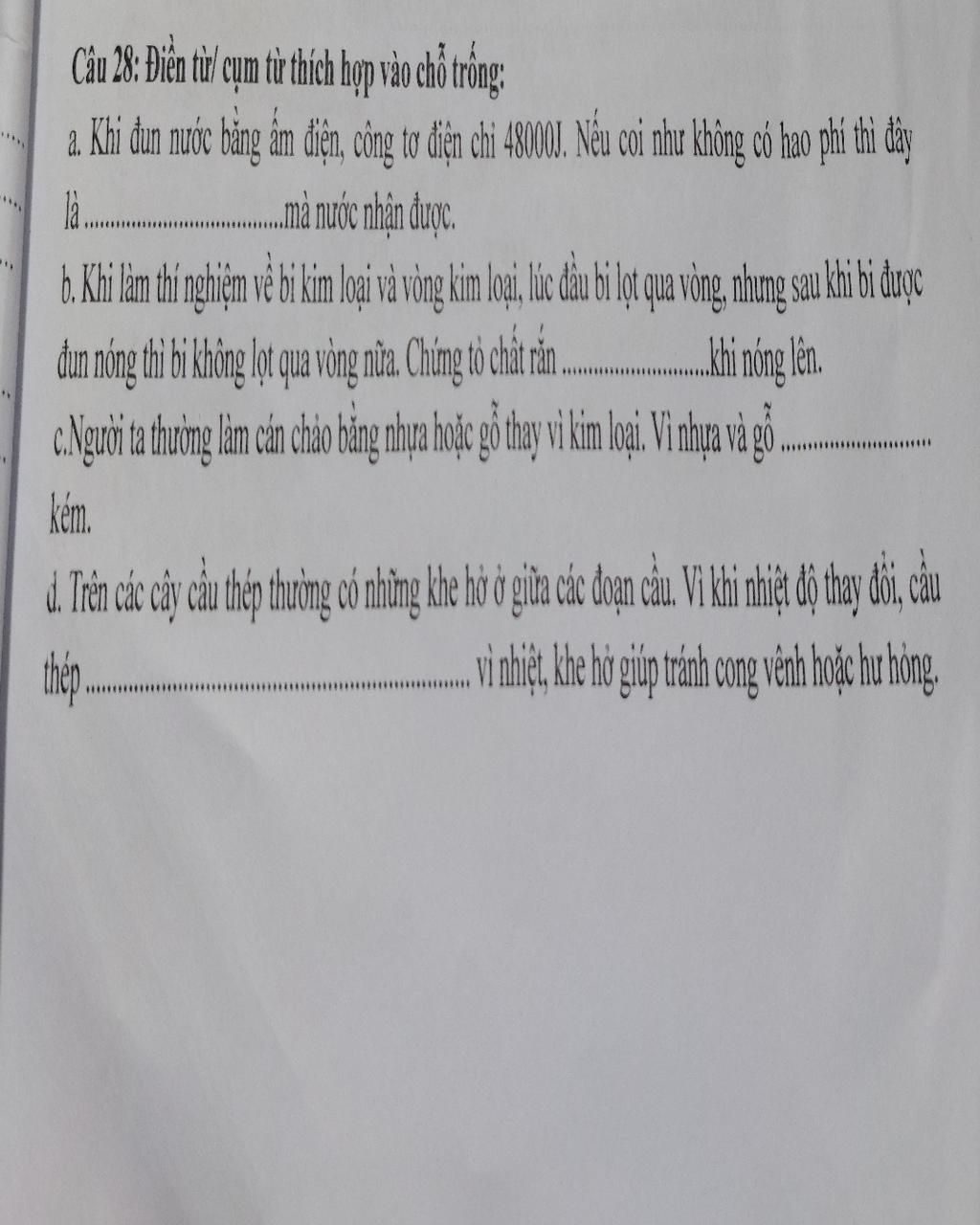 $\bf{c.}$ Từ cần điền: dẫn nhiệt