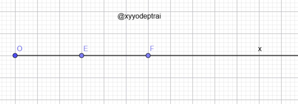 Trên tia Ox lấy hai điểm E và F sao cho OE=`6` ; OF=`12` cm.