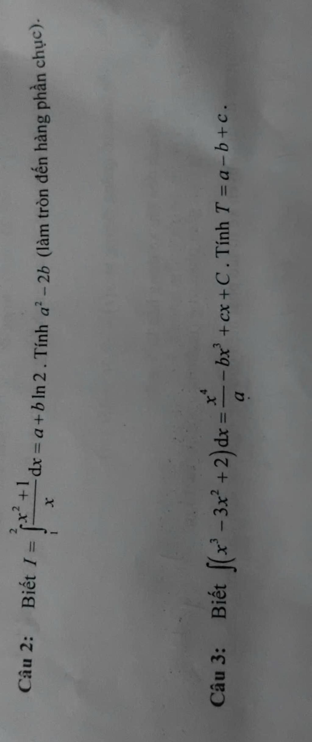 Câu `3) int (x^3 - 3x^2 + 2) dx`