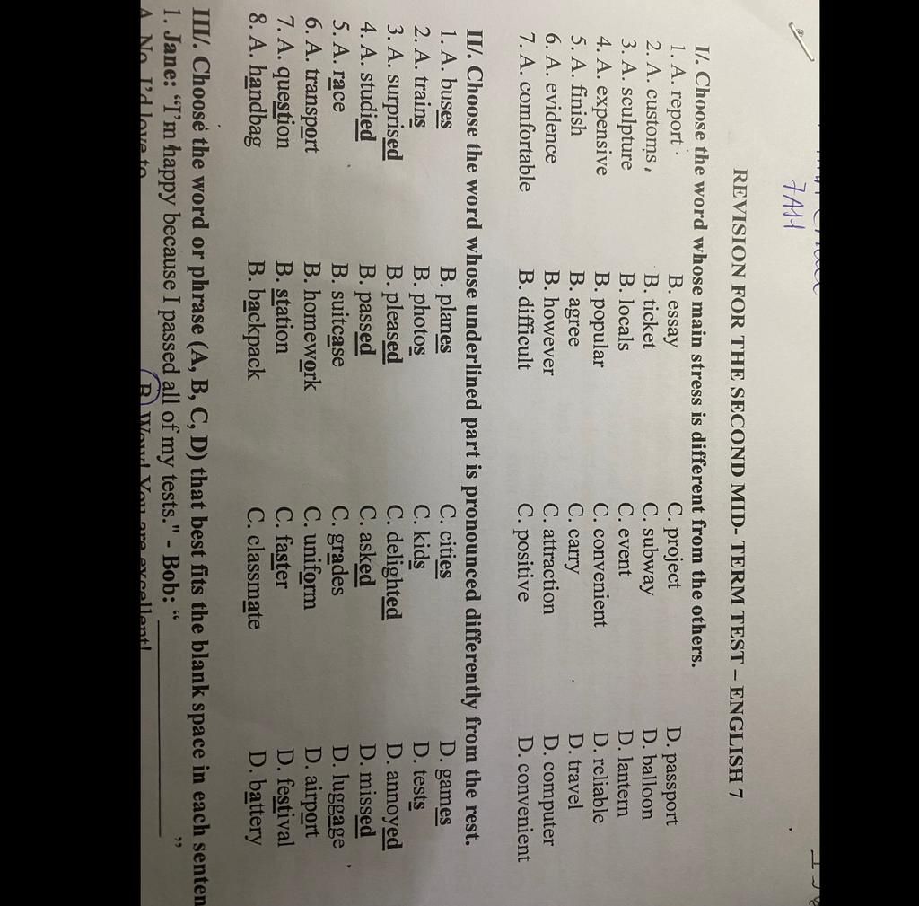 `7.A` (phát âm là /stʃ/, còn lại là /st/)