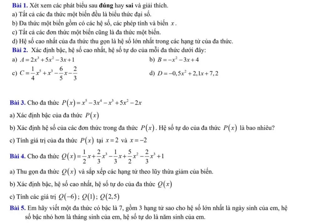 & \text{d) Sai. Hệ số cao nhất là hệ số của số hạng có bậc cao nhất, không phải là số lớn nhất.} \\