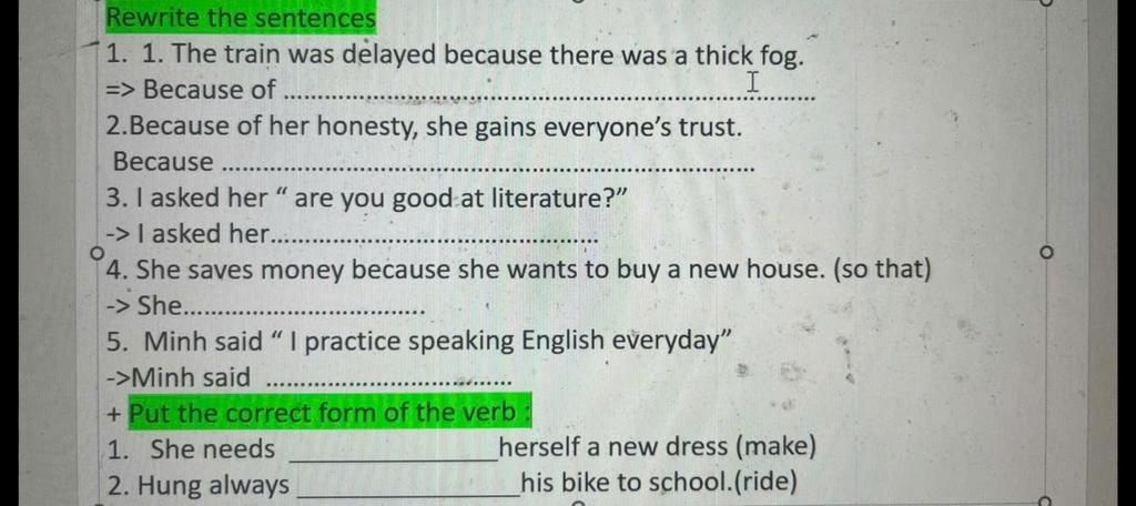 5. Minh said that she practiced speaking English everyday.