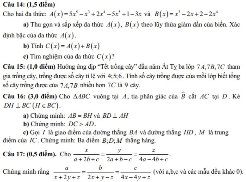 &\text{a) Thu gọn và sắp xếp đa thức } A(x), B(x) \text{ theo lũy thừa giảm dần của biến. Xác định bậc của đa thức } A(x)\text{.} \\