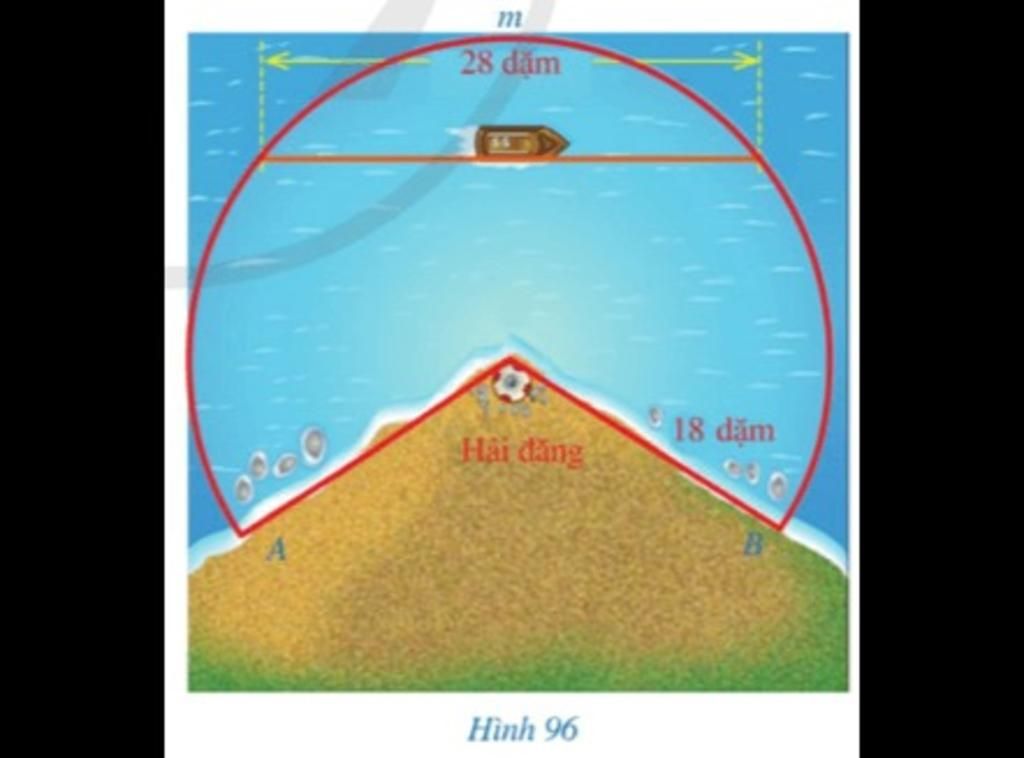 hình 96 biểu diễn vùng biển được chiếu sáng bởi 1 hải đăng có dạng hình 1 quạt tròn với bán kính 18 dậm cung AmB có số đo 245 độ