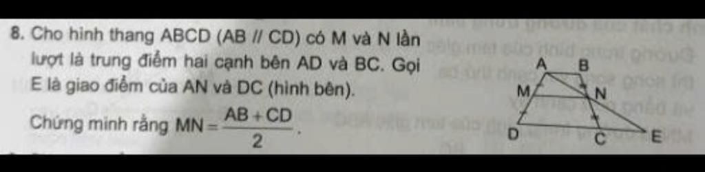 $\to MN=\dfrac{DE}2=\dfrac{DC+AB}2$